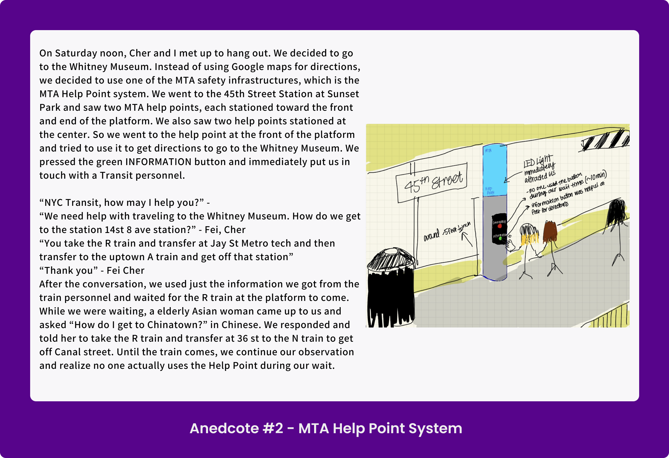 This is an experience prototype enhancing the waiting experience for students through the intersection of safety and mobility in public waiting areas.
